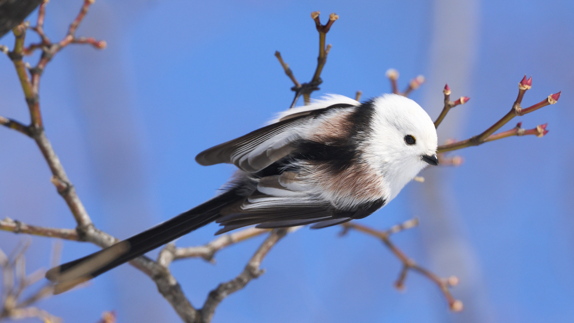 シマエナガ 『シマエナガ』は北海道固有のエナガの亜種で、冬毛のモフモフが人気です。 |