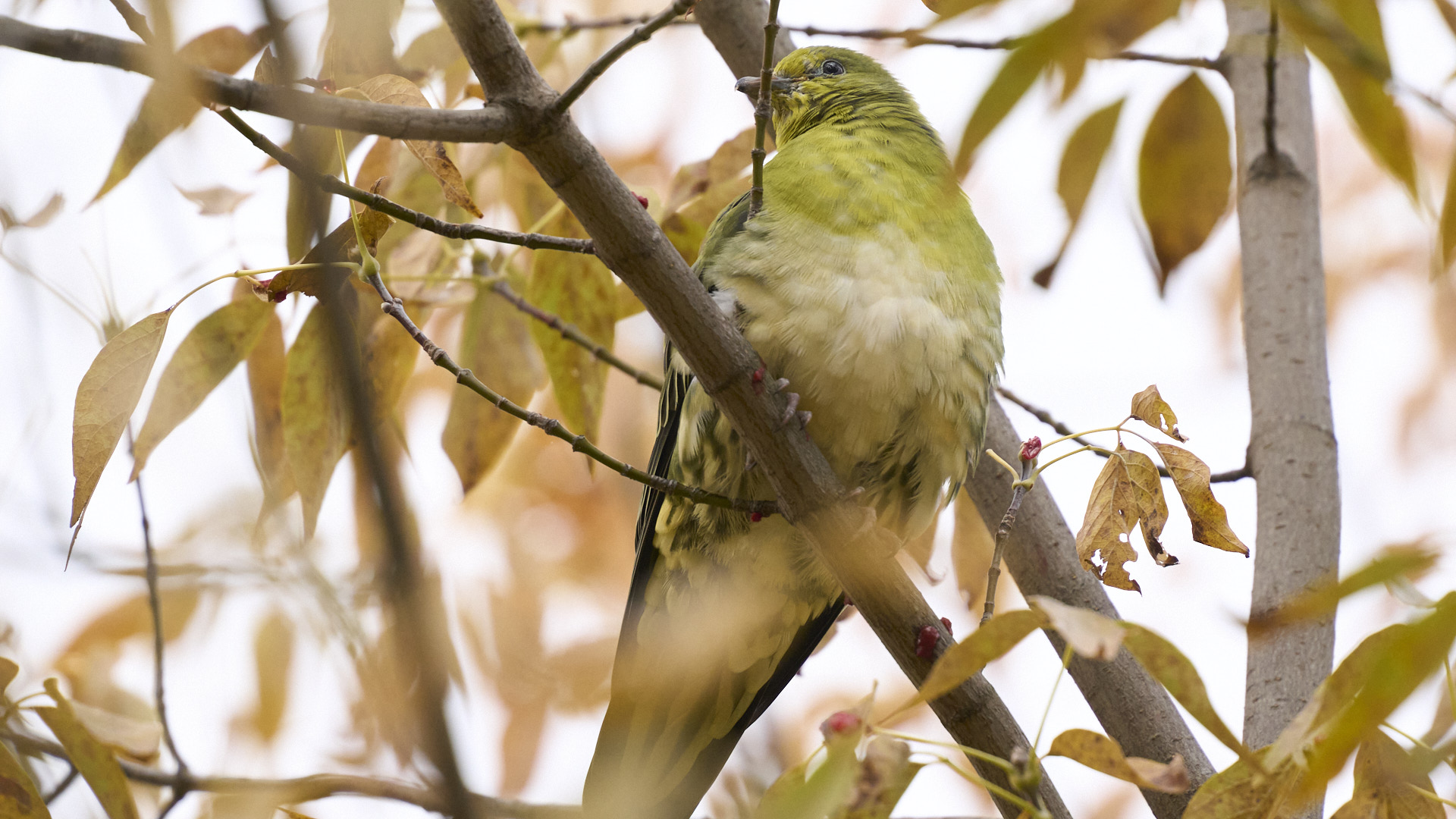 中島公園のアオバトです(2025年10月27日)。初めてアトリを撮影出来ました。