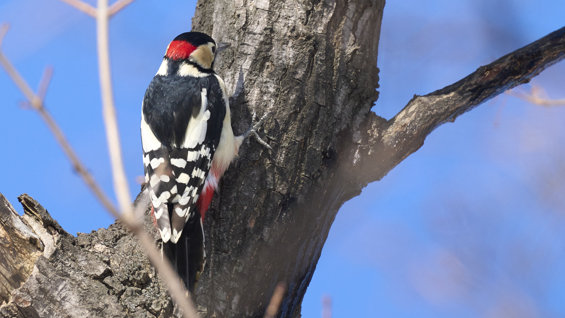 札幌市中島公園のアカゲラ(オス)です(2024年2月23日)。