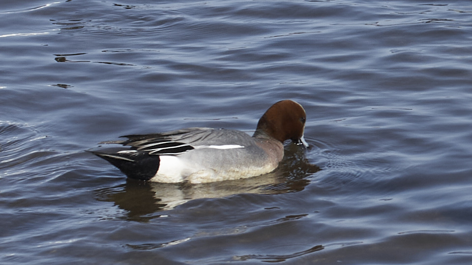 札幌の中島公園はあまり見掛けないヒドリガモが、マガモの群れと一緒に泳いでいました(2020年12月13日撮影)。