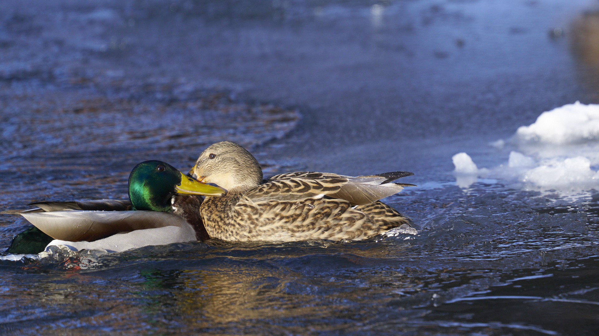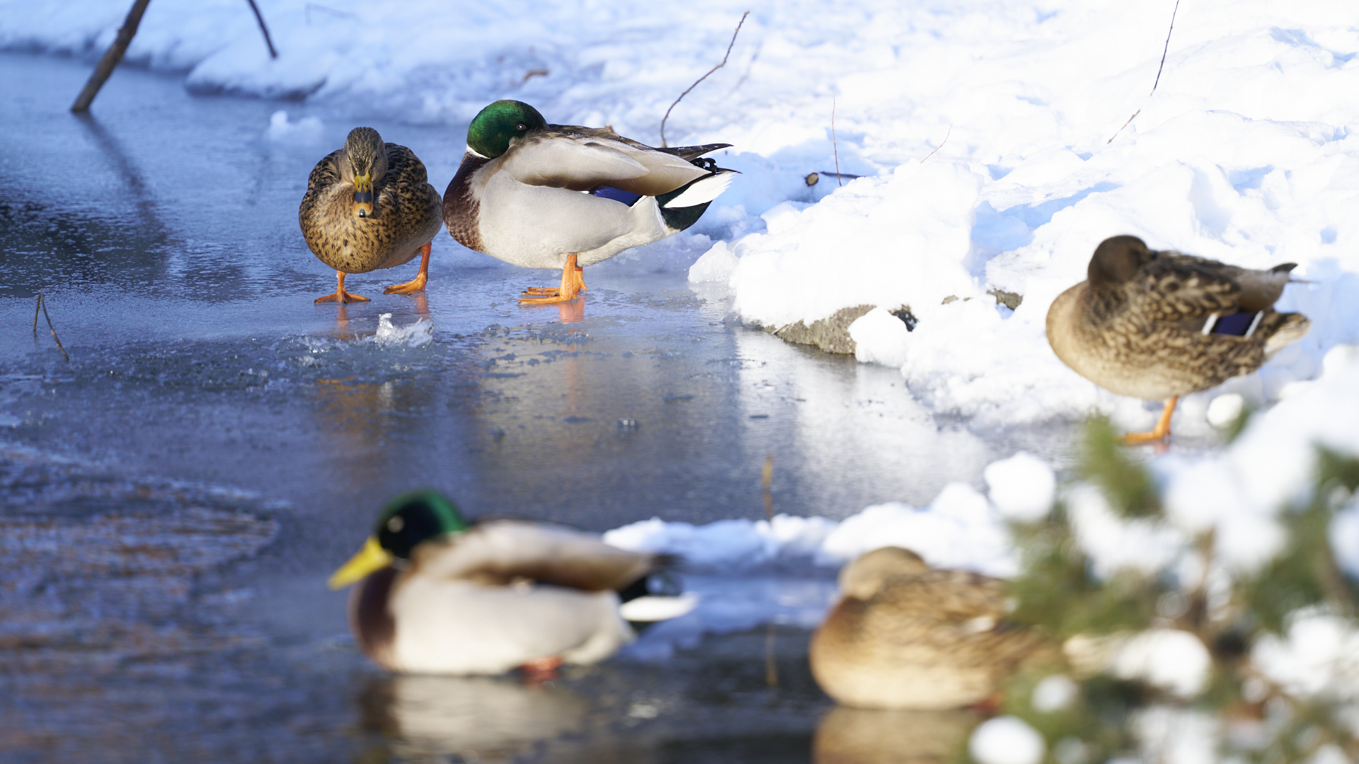 札幌護国神社のマガモの群れです(2022年1月10日撮影)。