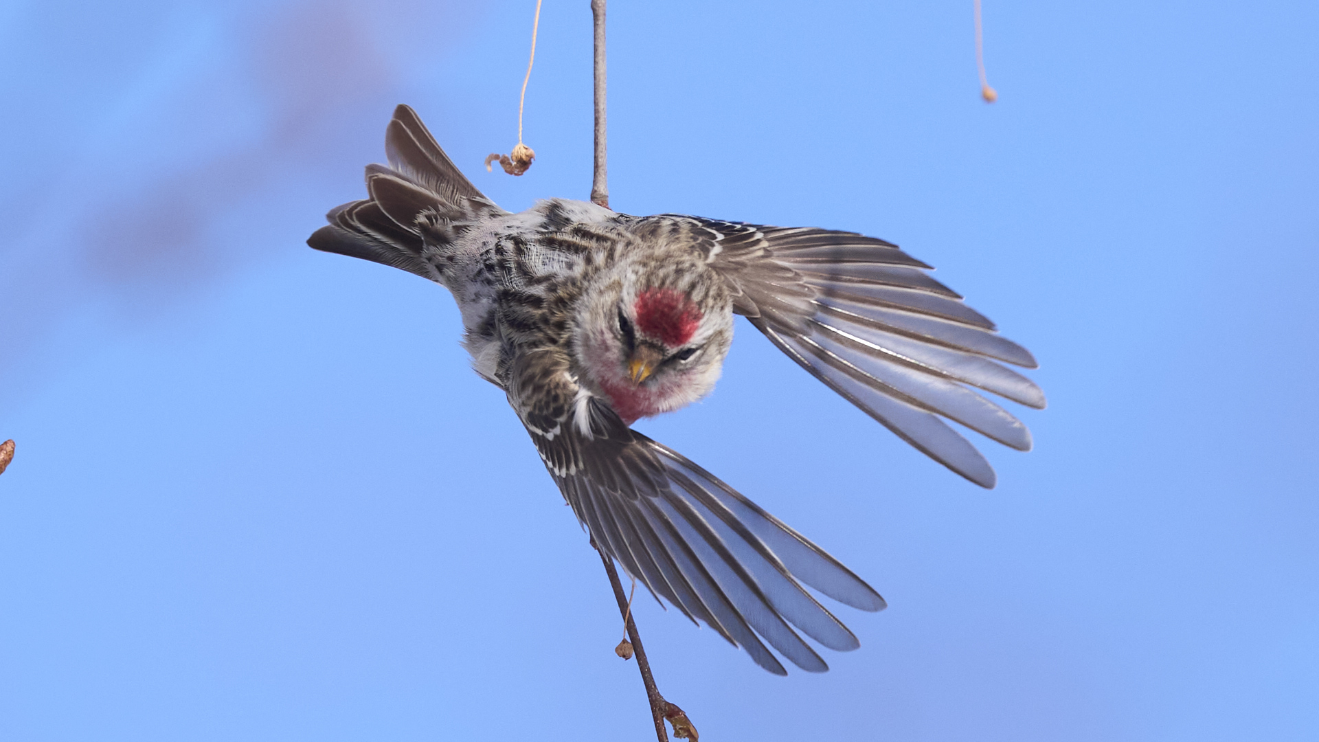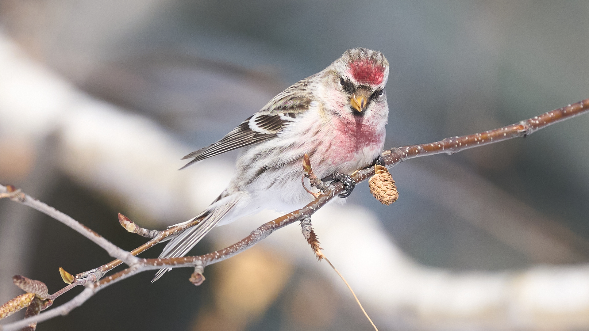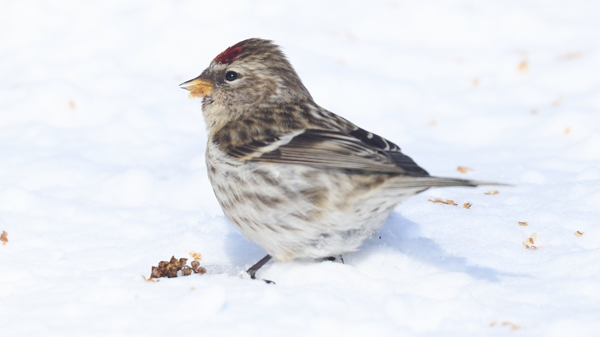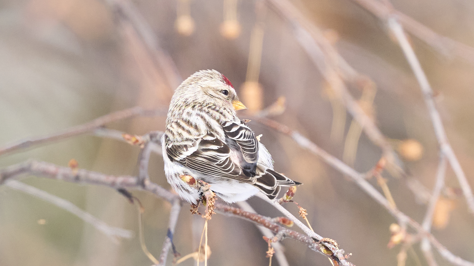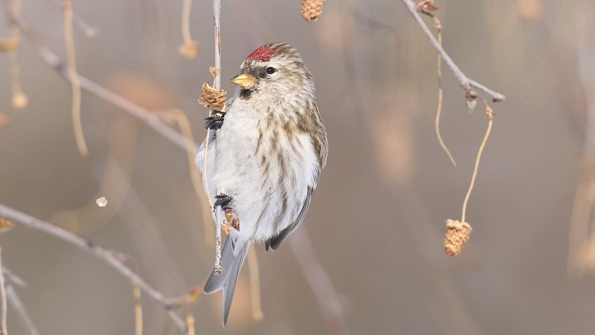 札幌市中島公園に現れたベニヒワのオスです(2026年2月10日)。人生2度目のベニヒワ撮影です。