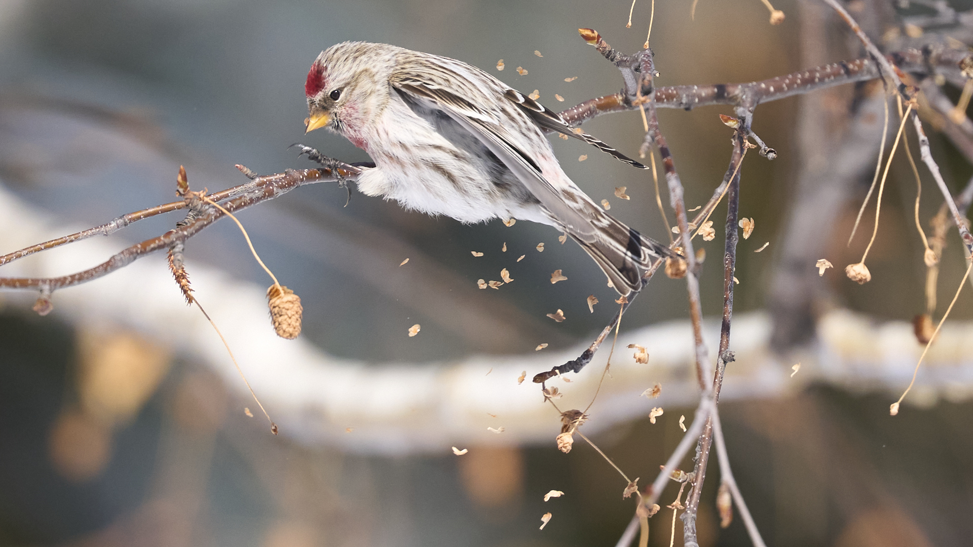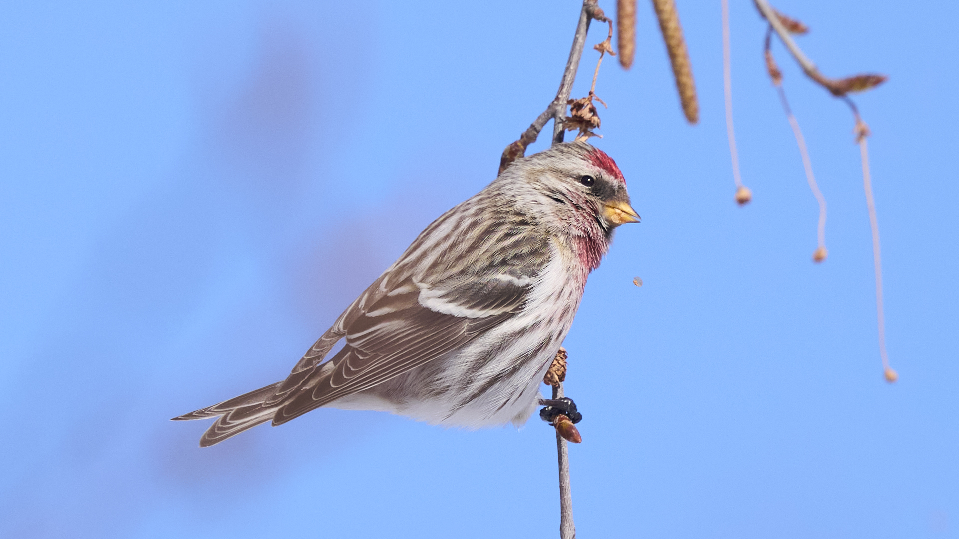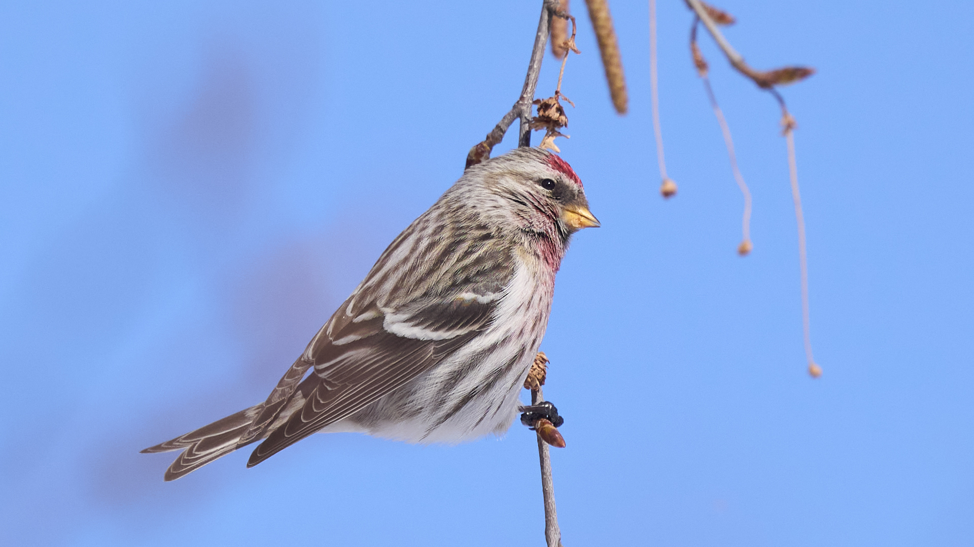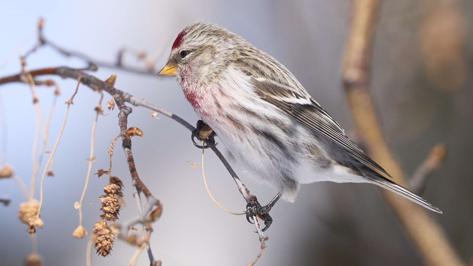 札幌市中島公園に現れたベニヒワのオスです(2026年2月10日)。人生2度目のベニヒワ撮影です。