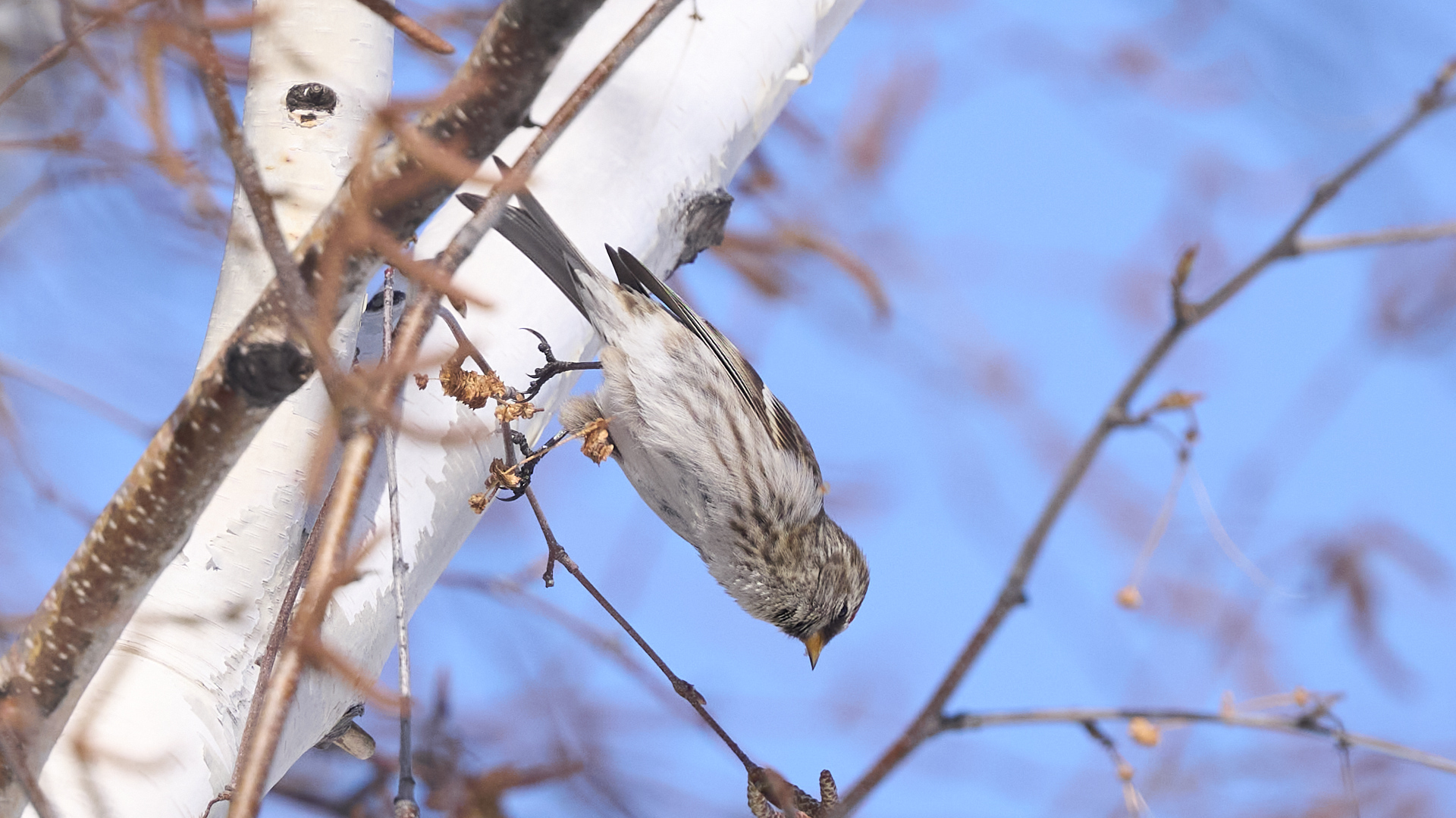 中島公園のベニヒワのメスです(2025年11月24日)。 #中島公園のベニヒワ