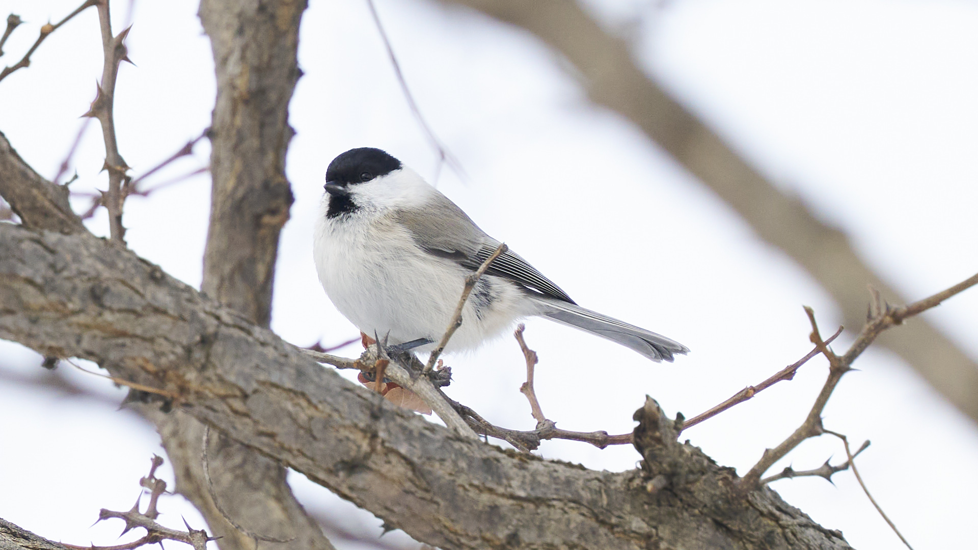 江別市の野幌総合運動公園にいたハシブトガラです(2021年2月11日撮影)。
