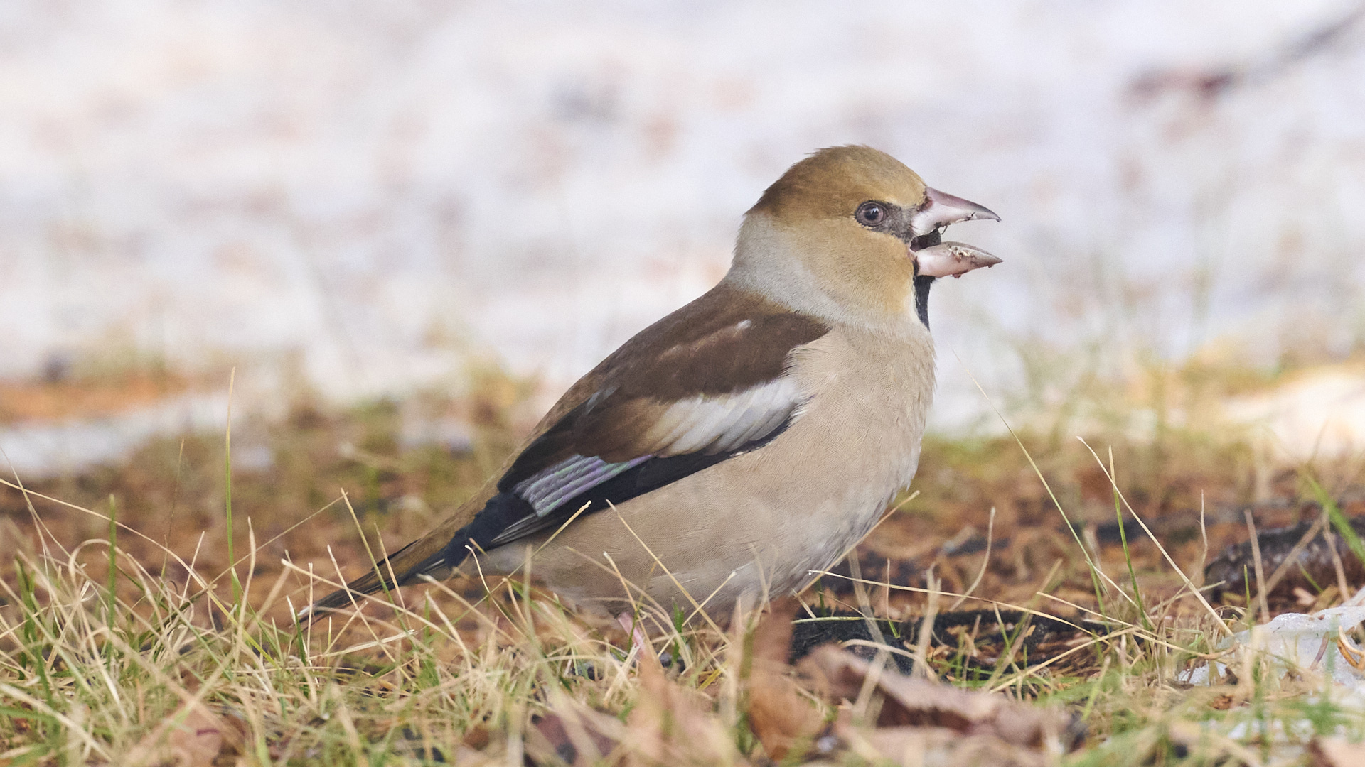 札幌市の中島公園で見掛けたシメです(2024年2月12日撮影)。