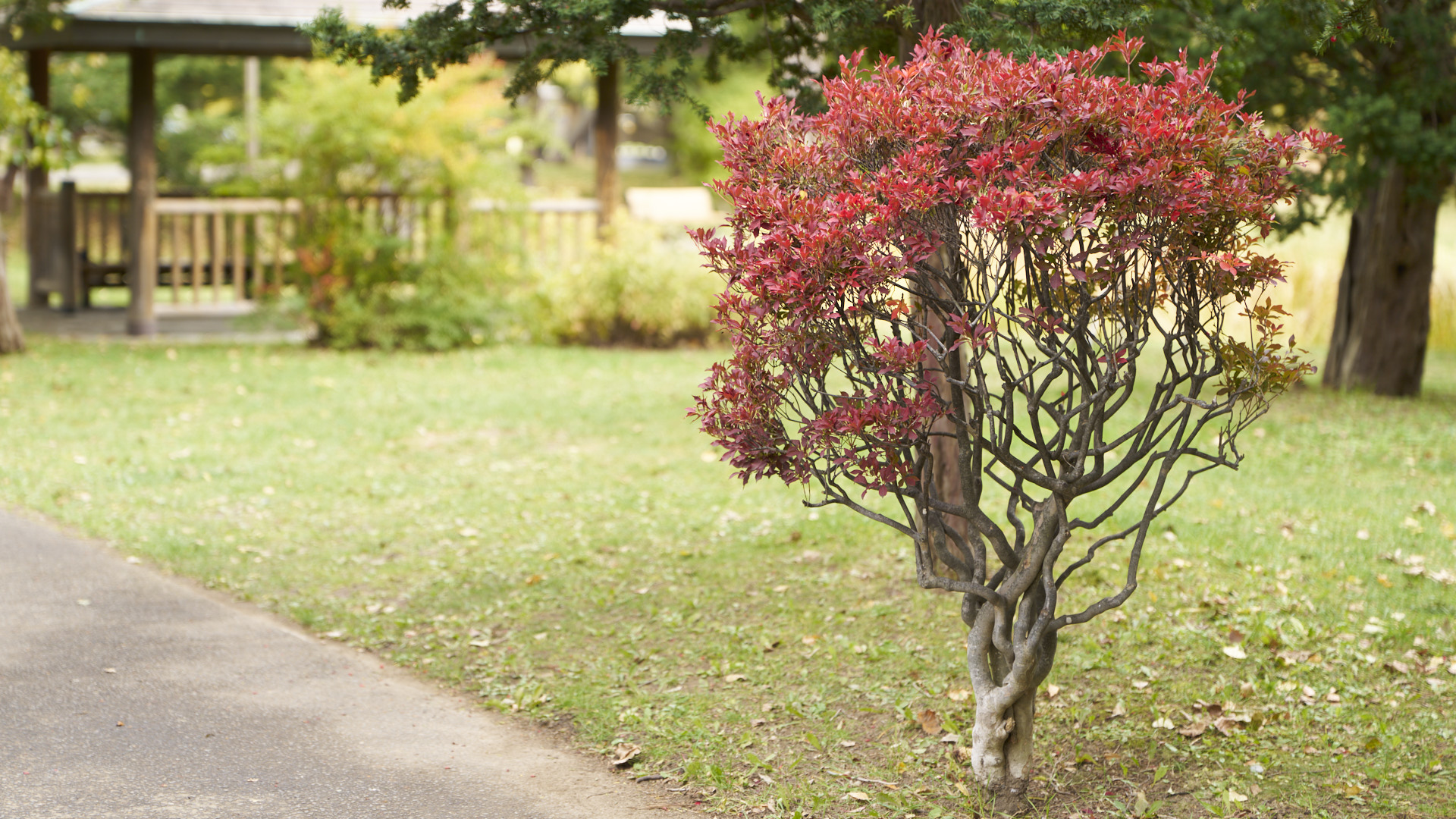 中島公園の紅葉も終盤を迎えましたが、真っ赤な木も残っていました(2024年11月6日撮影)。