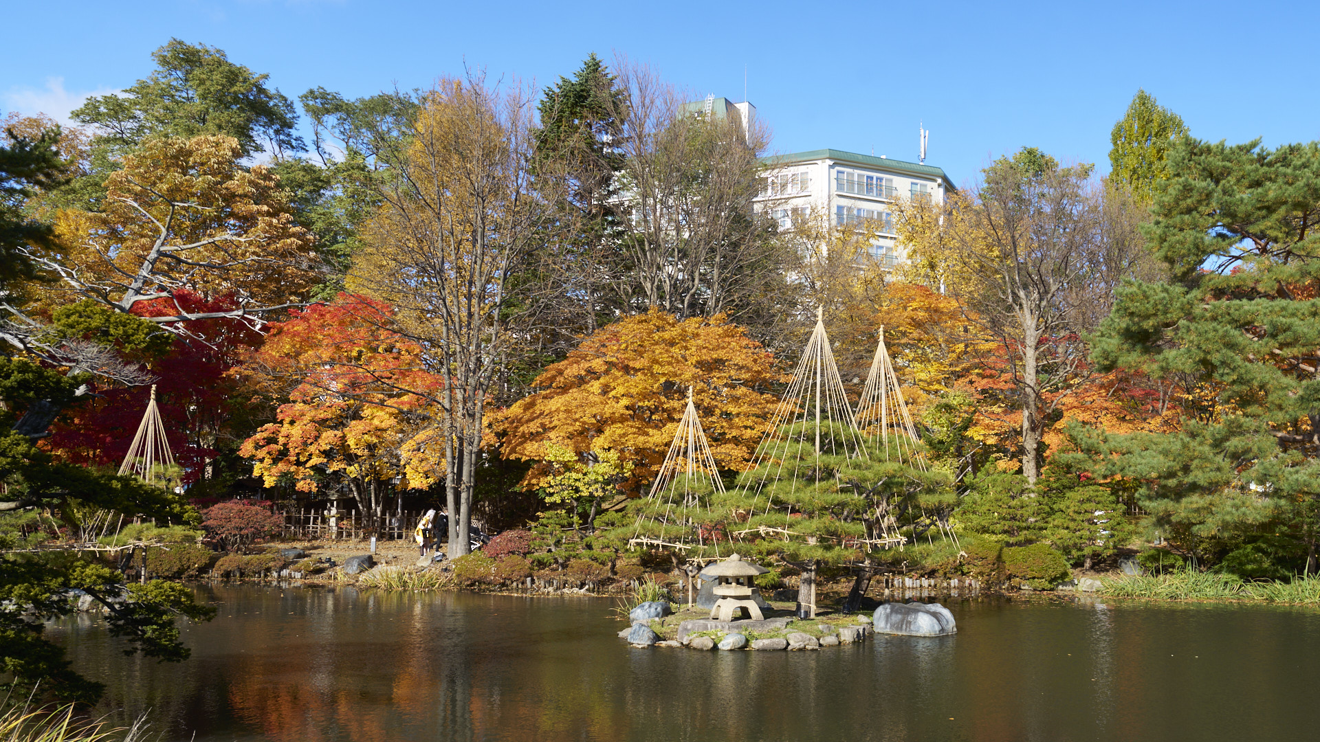 札幌中島公園の日本庭園の紅葉です(2024年10月25日撮影)。