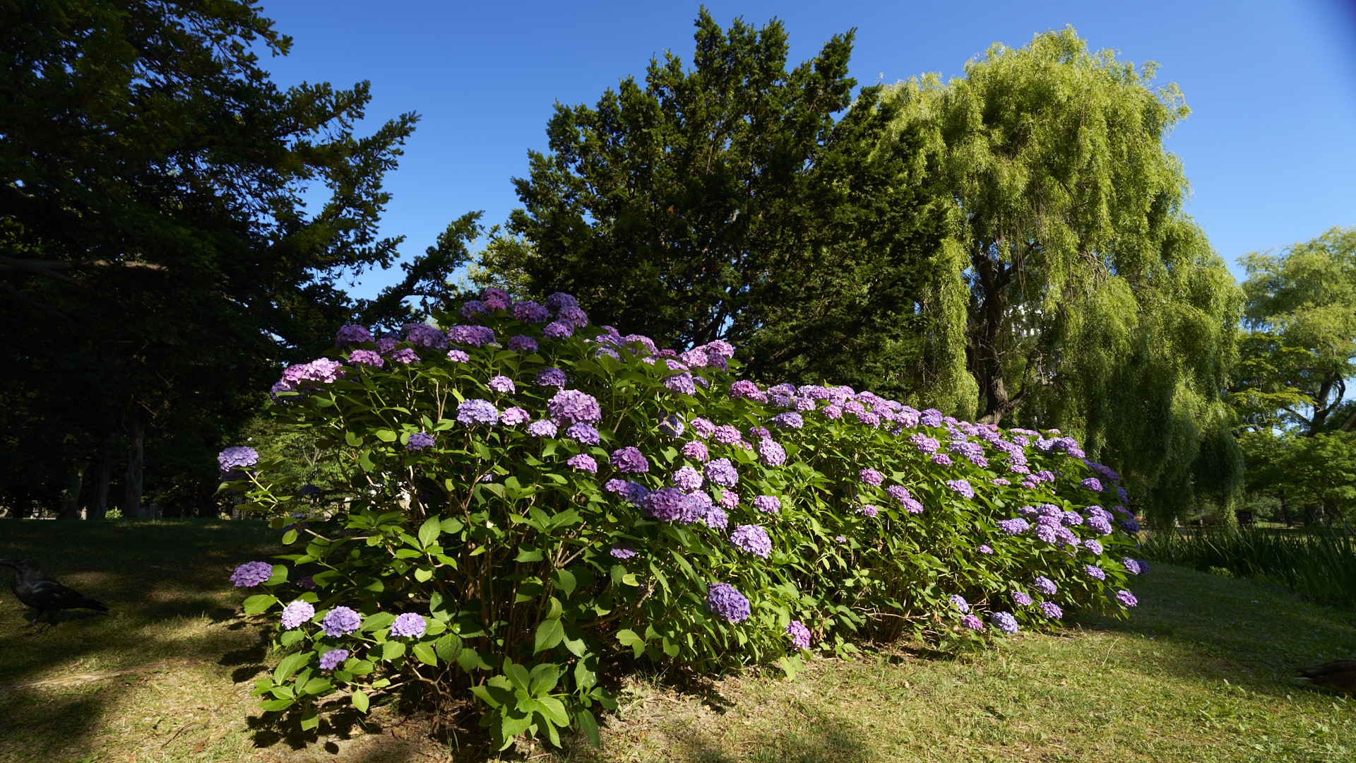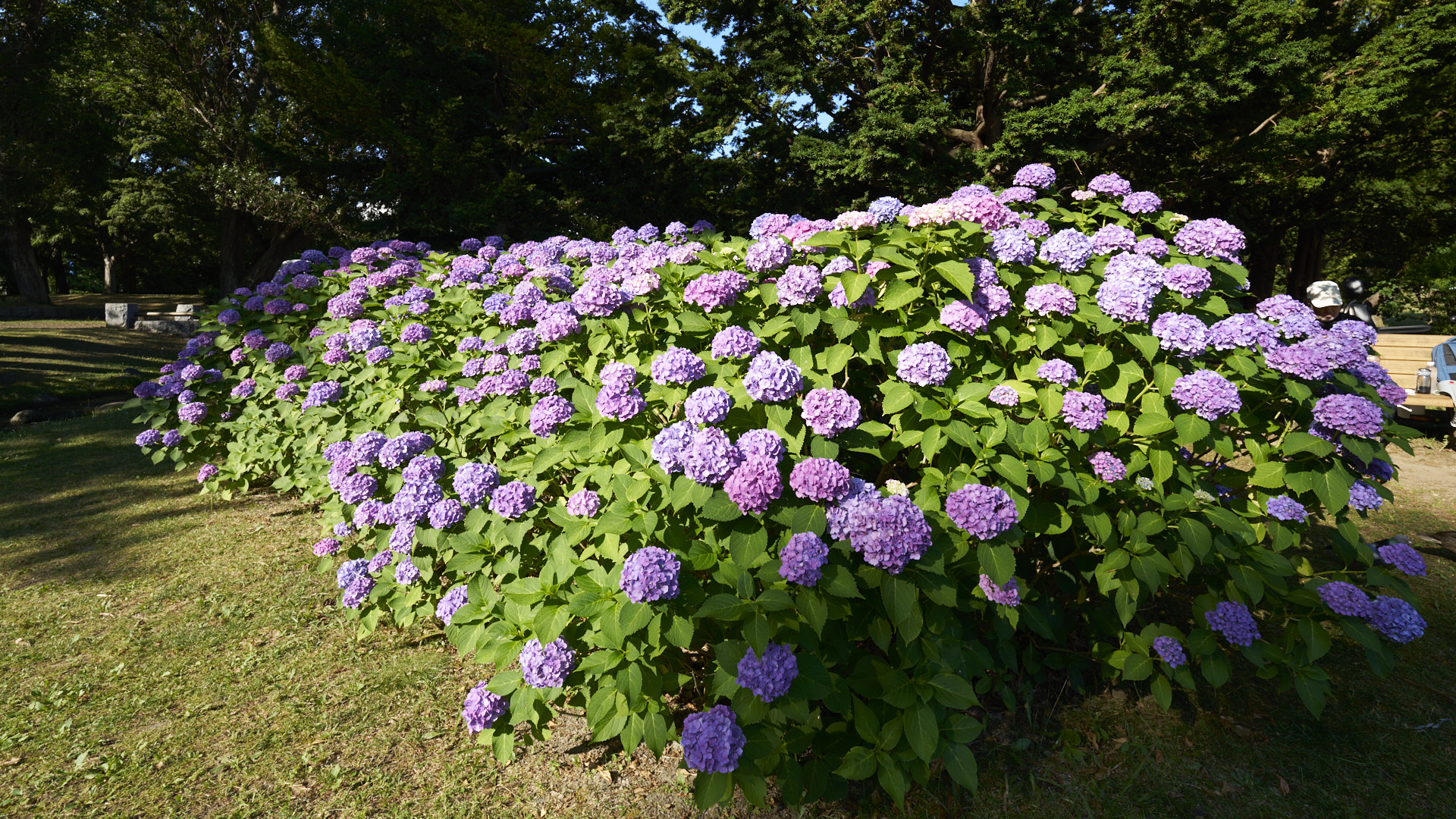 札幌中島公園 菖蒲池ほとりのアジサイ(2025年7月25日)。