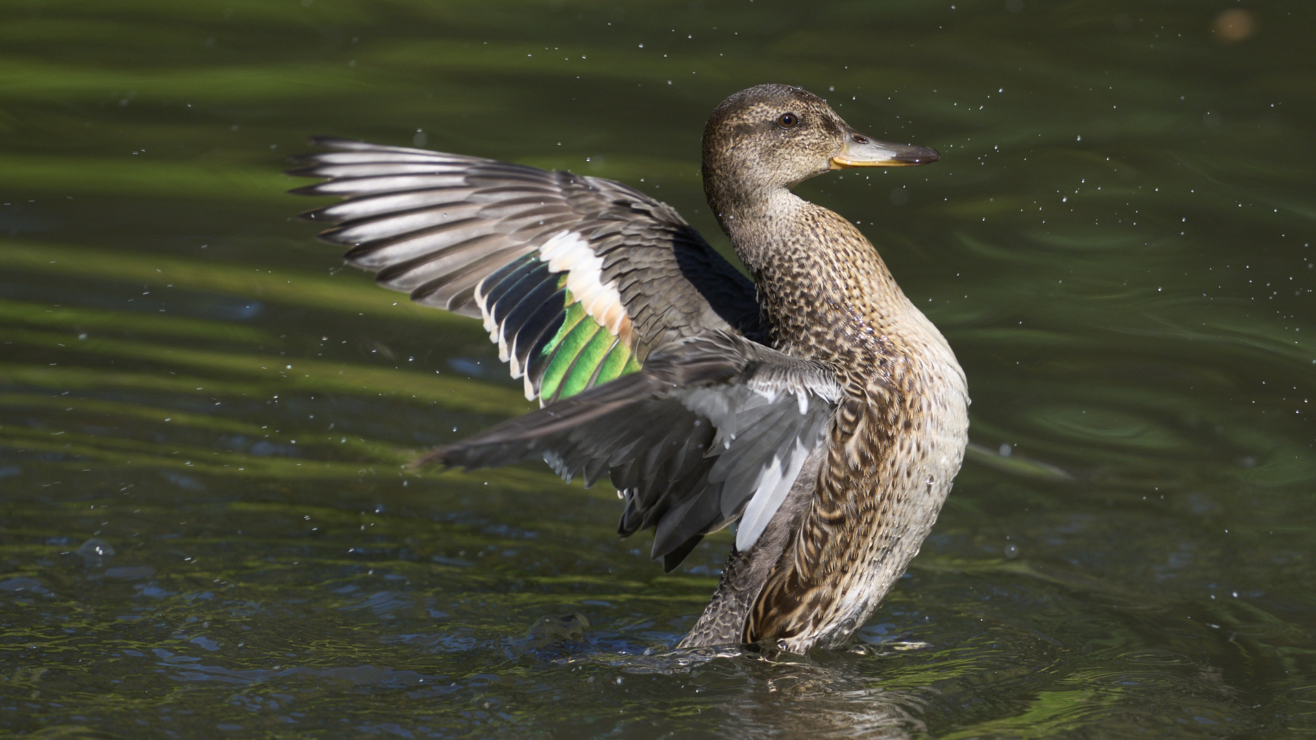 前日中島公園に現れたコガモ(メス)が、今日も菖蒲池にいました(2025年9月16日)。