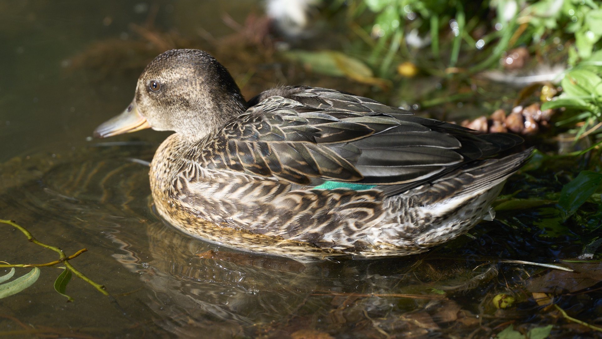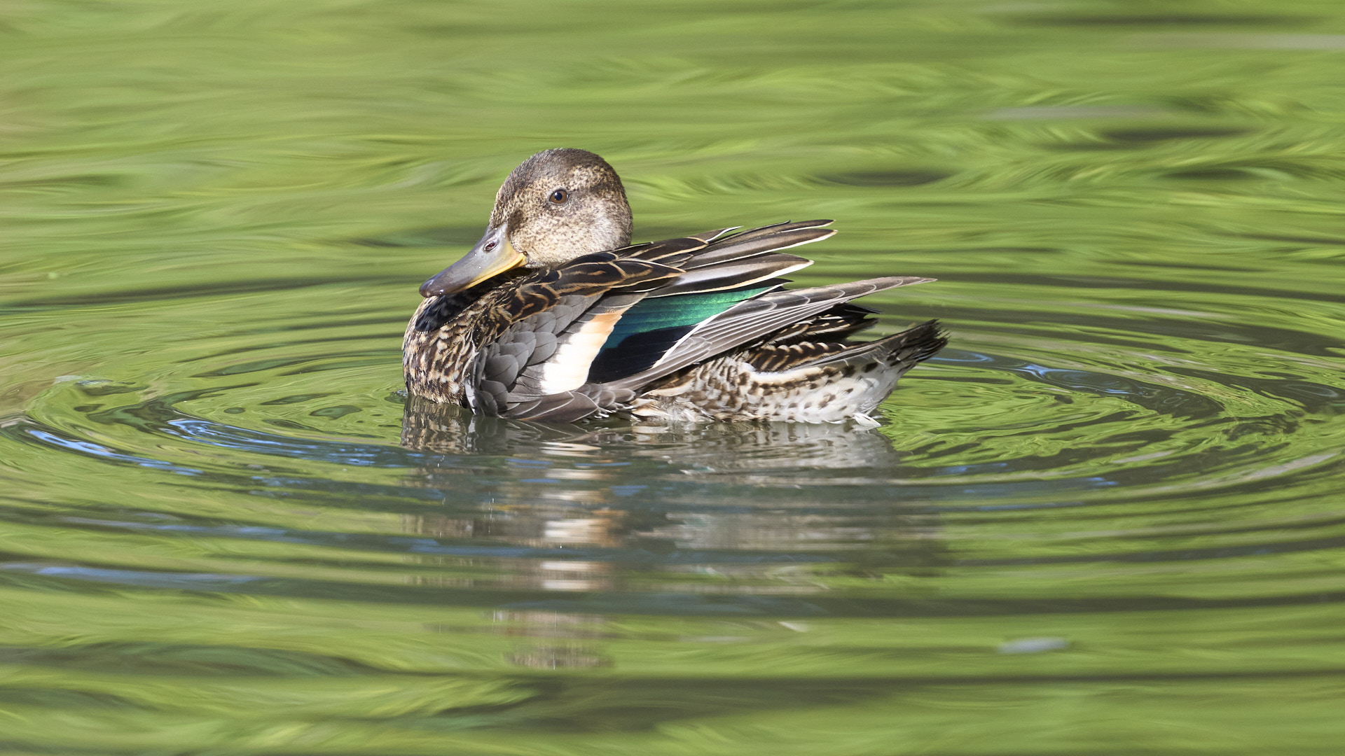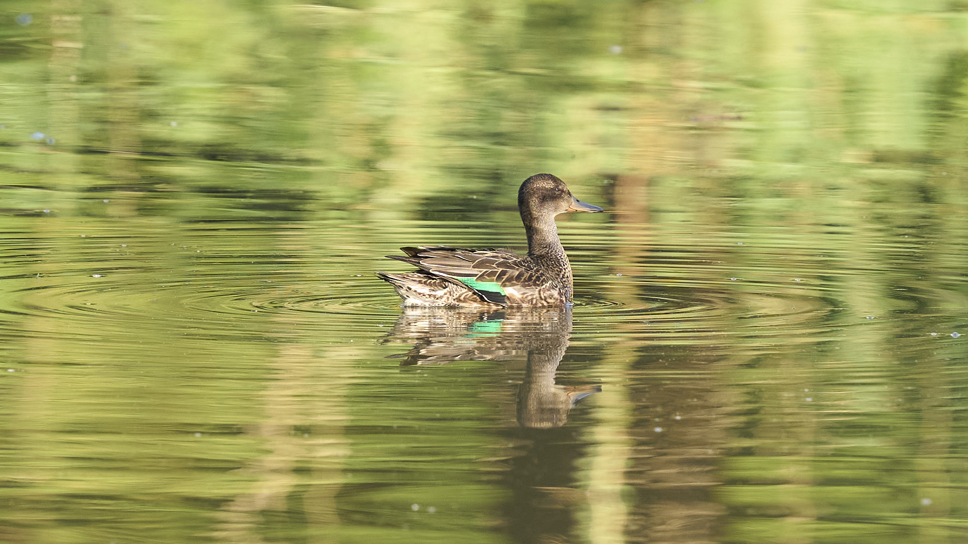 前日、菖蒲池に現れたコガモのメス1羽です(2025年9月16日)。