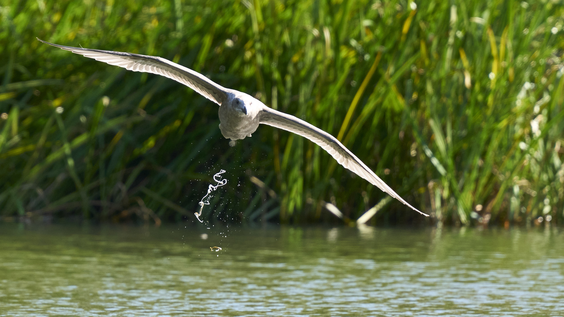 オオセグロカモメの幼鳥の飛行中トイレタイム(2025年9月16日)。