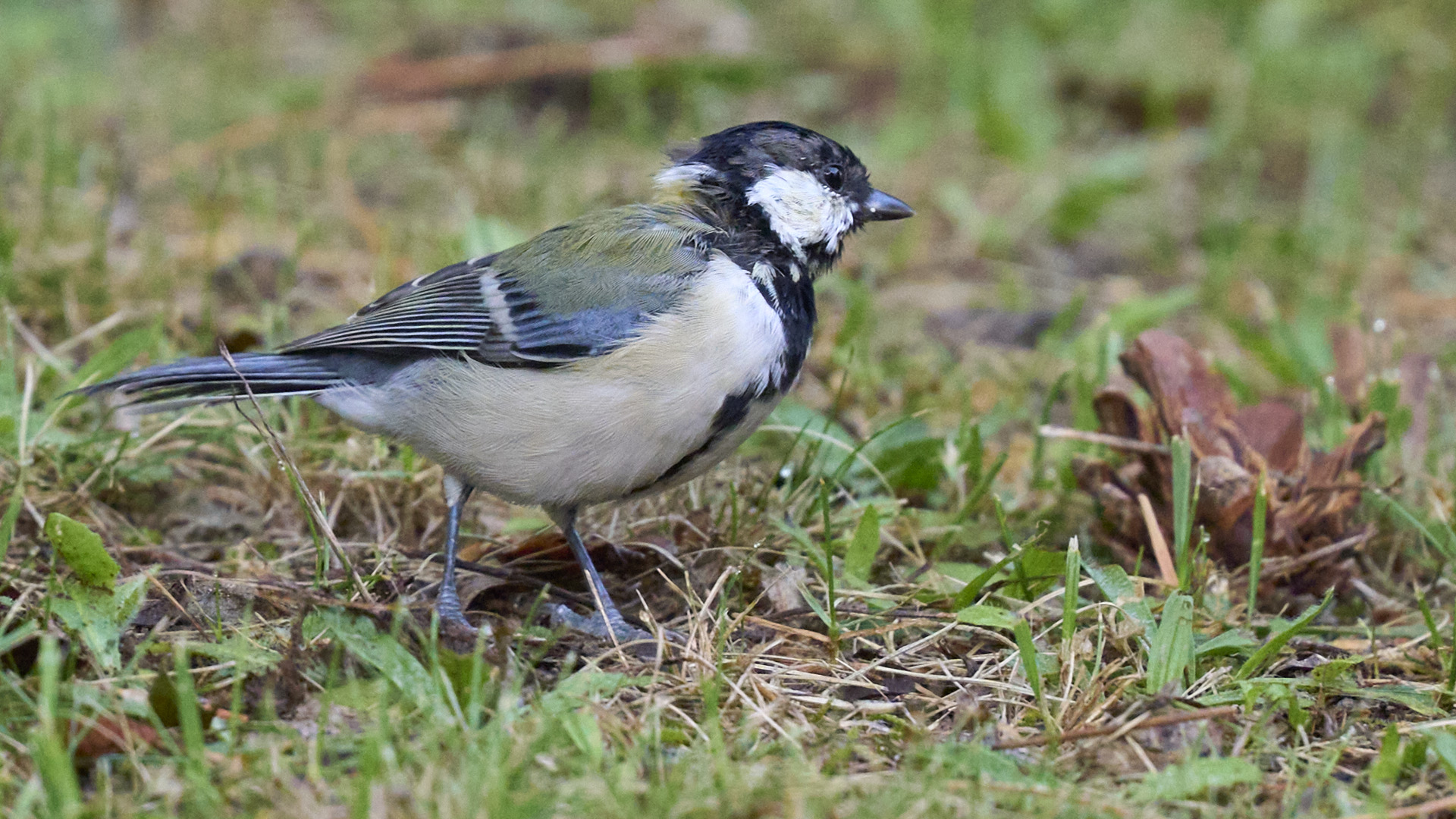 中島公園で見掛けたシジュウカラ(2025年9月16日)。頭の毛がぼそぼそなので、若い鳥の様です。