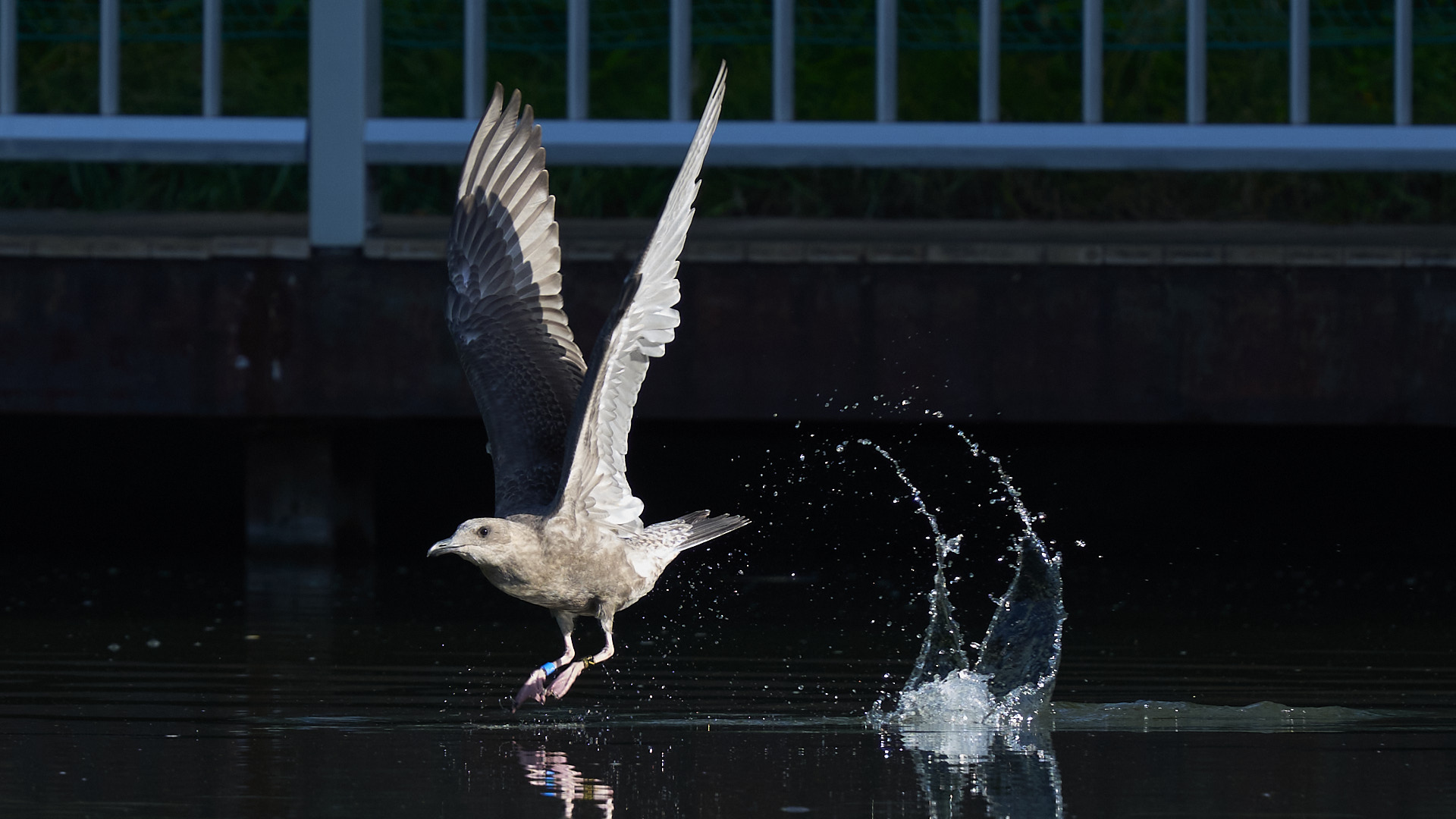 オオセグロカモメの幼鳥が飛び立つ瞬間です(2025年9月16日)。