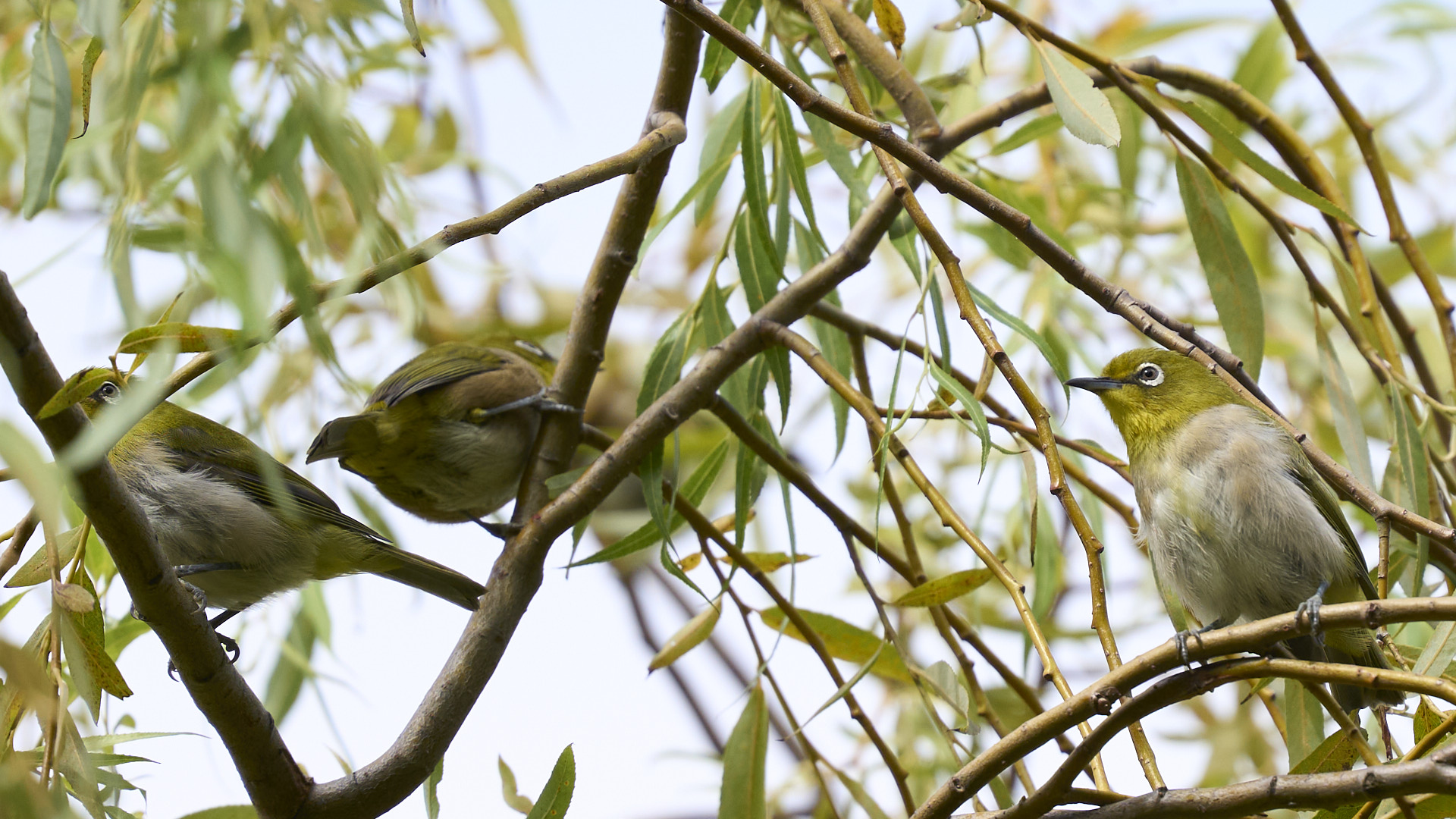 中島公園で見掛けたメジロの集団です(2025年9月21日)。目視では、10羽以上いました。